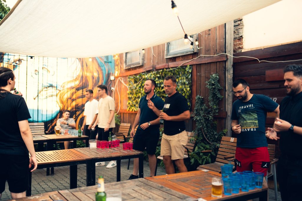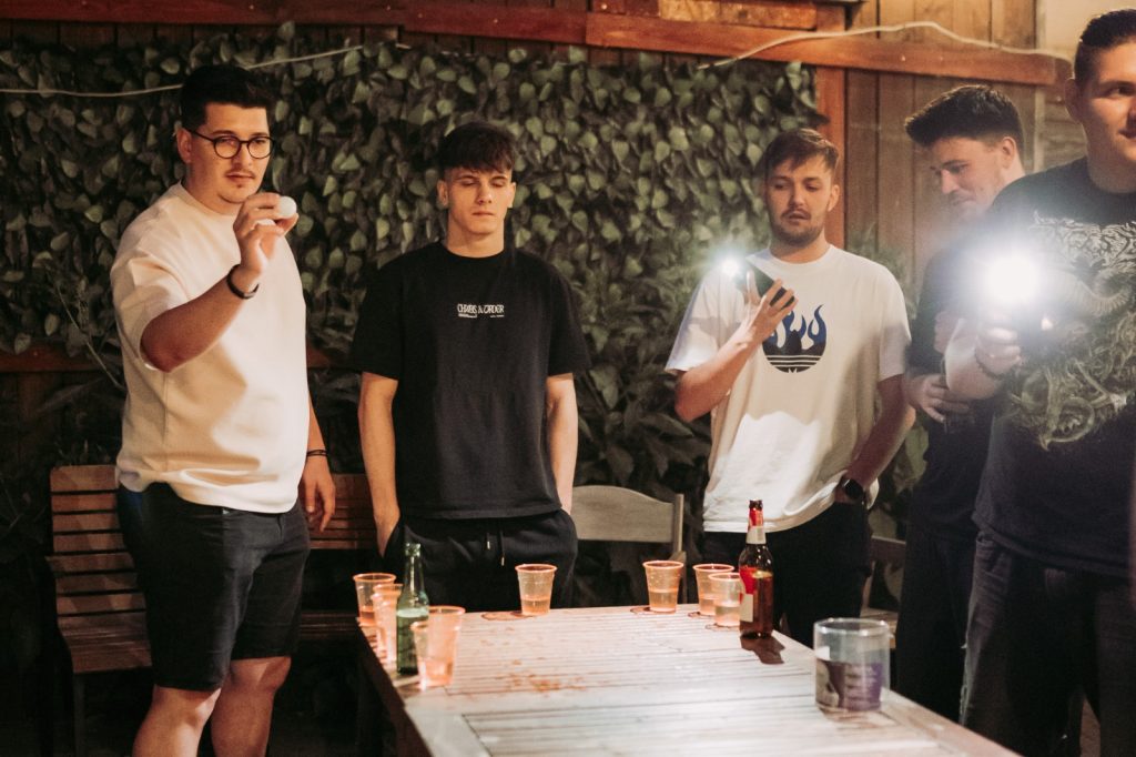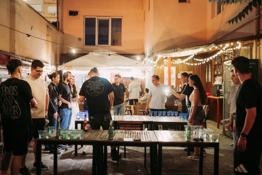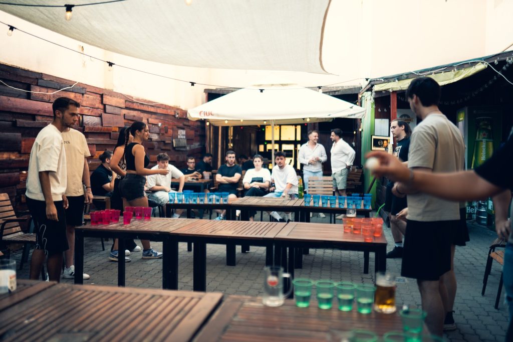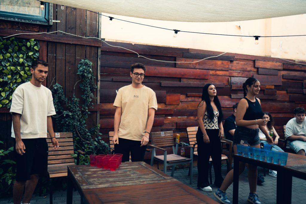 Câteva mese lungi de lemn, pahare colorate aranjate în triunghi, o bilă de ping pong și vreo douăzeci de oameni care brusc devin foarte competitivi. Asta a fost beer pong-ul de pe terasa noastră în iunie 2025 — și a fost exact atât de bun pe cât sună.