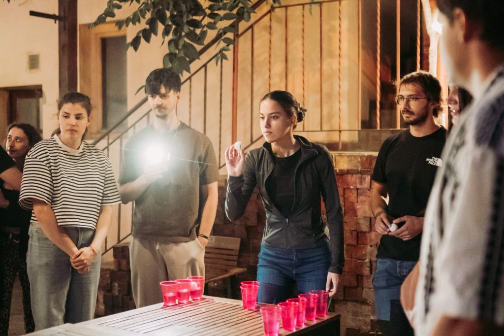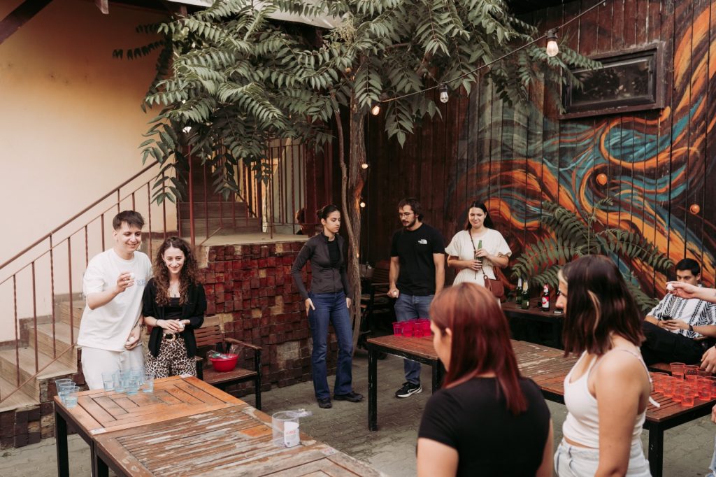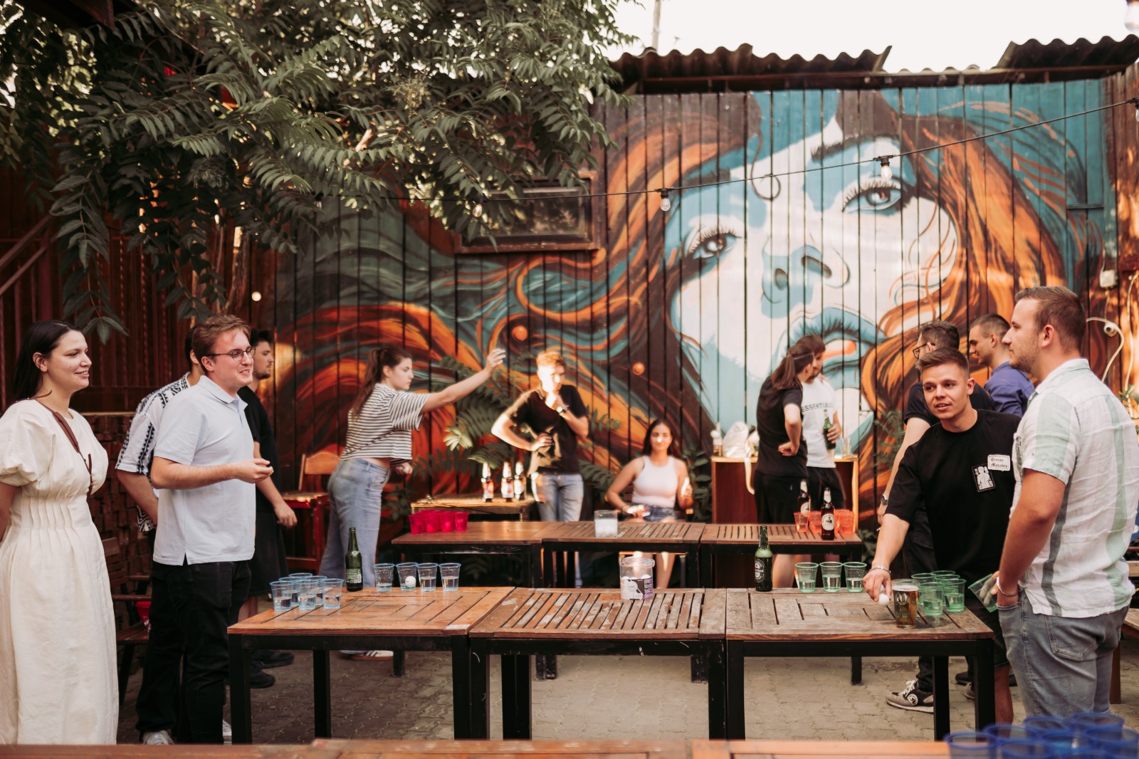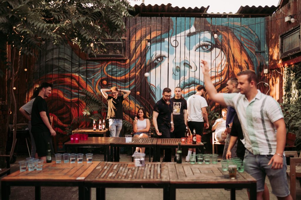 Câteva mese lungi de lemn, pahare colorate aranjate în triunghi, o bilă de ping pong și vreo douăzeci de oameni care brusc devin foarte competitivi. Asta a fost beer pong-ul de pe terasa noastră în iunie 2025 — și a fost exact atât de bun pe cât sună.