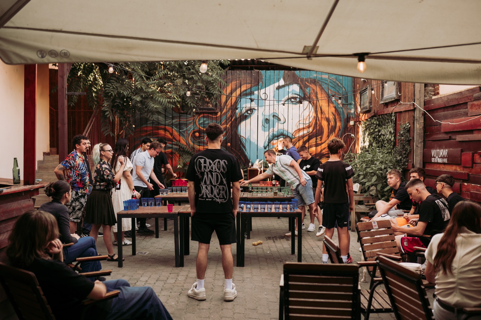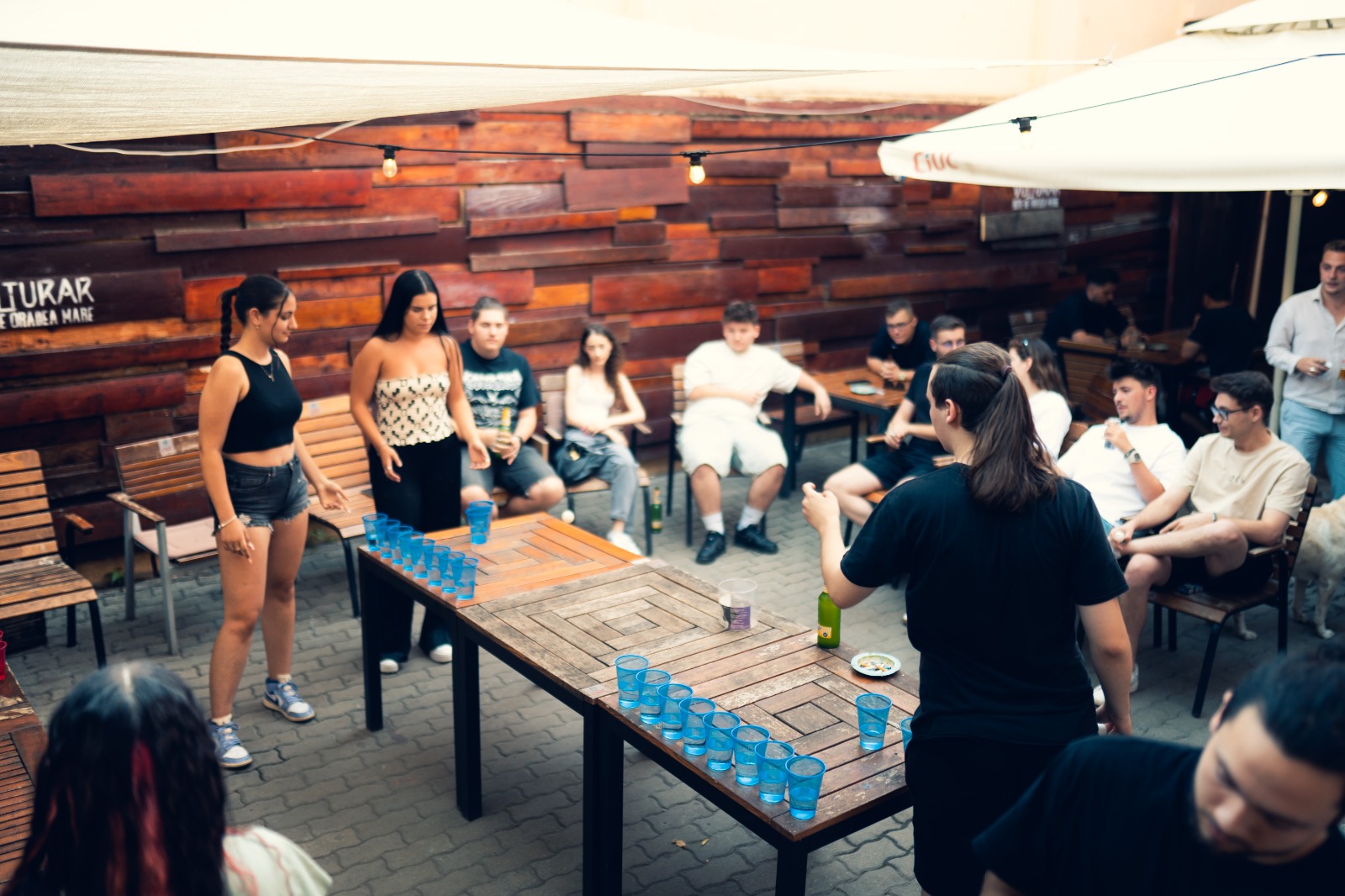 În iunie 2025, terasa nostră din Oradea s-a transformat în arena oficială de beer pong a orașului. Mai multe mese active în același timp, echipe față în față, pahare roz, albastre, verzi și portocalii aliniate și gata de sacrificat — și o atmosferă de vară care a făcut totul și mai intens.